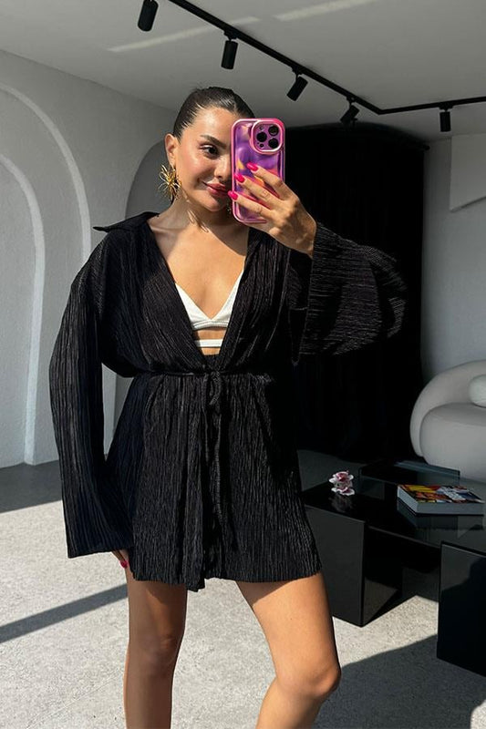 3 AL 2 ÖDEAdaline Kırinkıl Kimonolu Şortlu Takım-Siyah