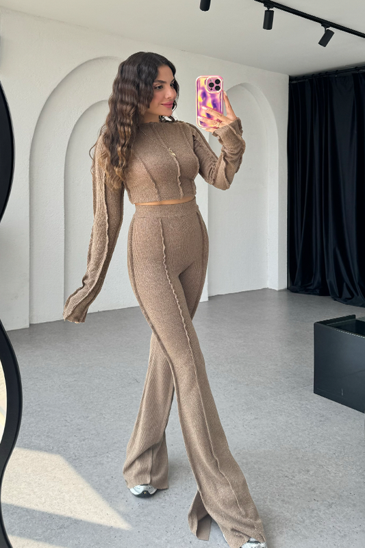 3 AL 2 ÖDEAdel ters dikişli karamel kırçıllı takım