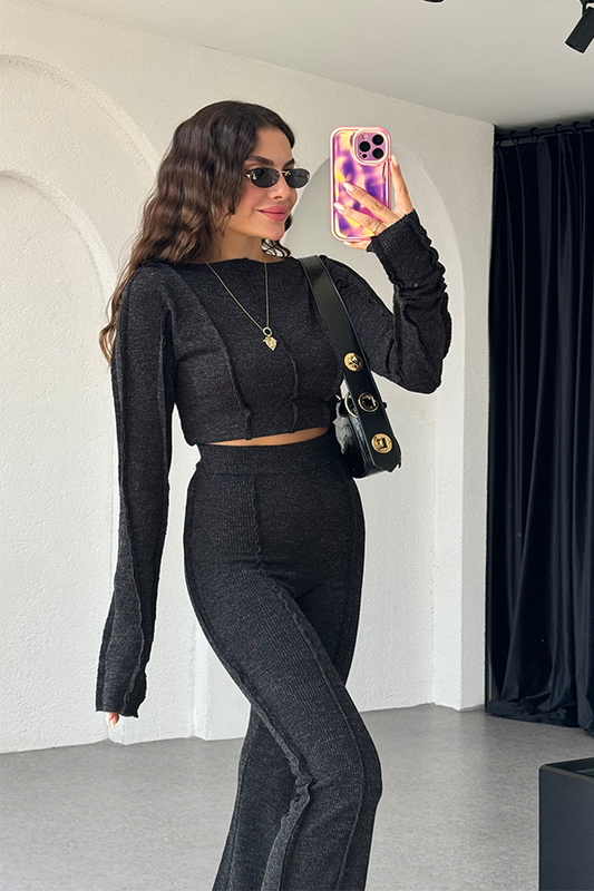3 AL 2 ÖDEAdel ters dikişli siyah kırçıllı takım