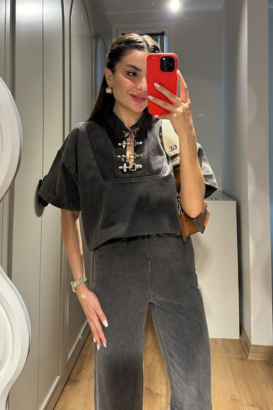 3 AL 2 ÖDEAdias Yakası Aksesuarlı Yıkama Takım - Siyah