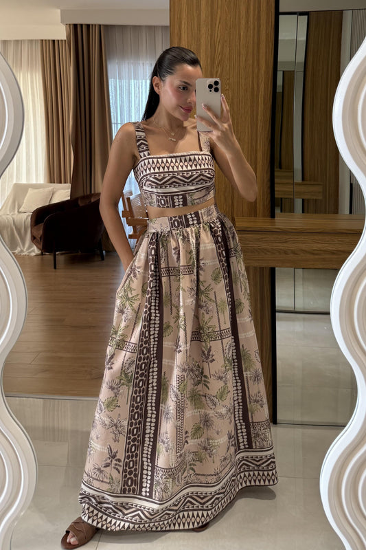 Bloody Kahve Desenli Kalın Askılı Etekli Takım