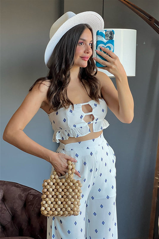 3 AL 2 ÖDEBlow beyaz mavi desenli ikili takım