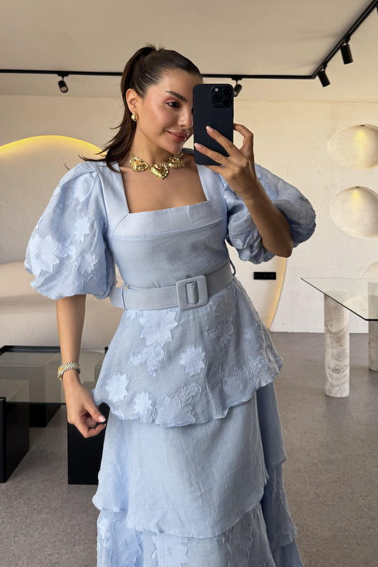 3 AL 2 ÖDEBogie Mavi Kat Kat Kemerli Elbise
