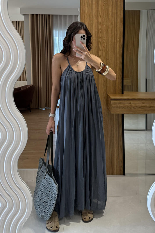 3 AL 2 ÖDEBohre Antrasit Keten Salaş Elbise