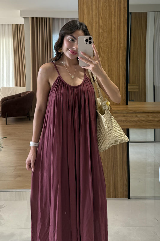 3 AL 2 ÖDEBohre Bordo Keten Salaş Elbise