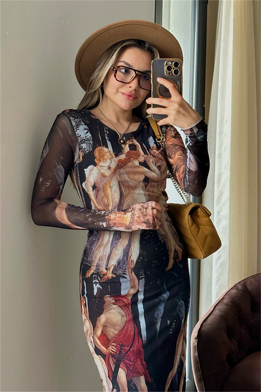 3 AL 2 ÖDEBoleyn figürlü tül kalem elbise