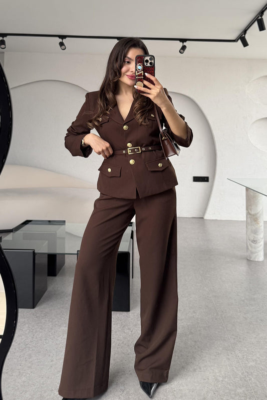 3 AL 2 ÖDEBORDO ASIMETRIK YAKA BLUZ PANTOLON TAKIM