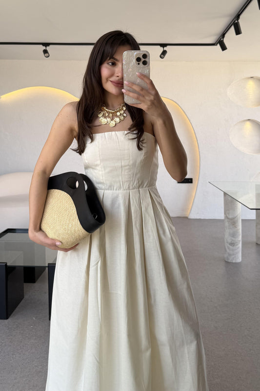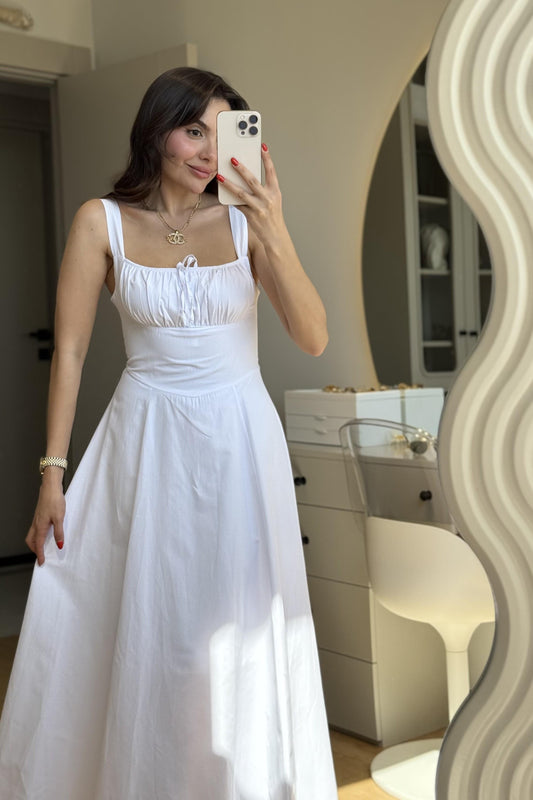 3 AL 2 ÖDEBonilla Beyaz Midi Kloş Elbise