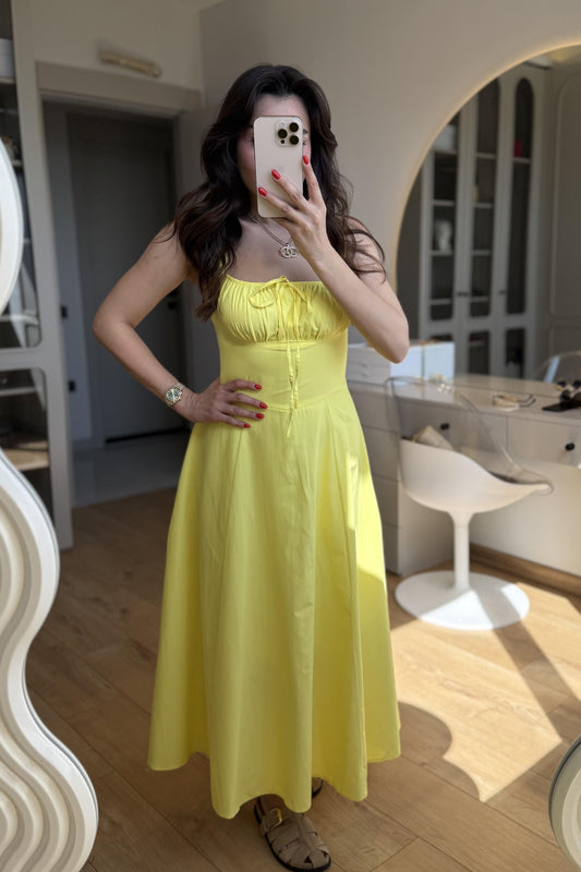 3 AL 2 ÖDEBonilla Sarı Midi Kloş Elbise