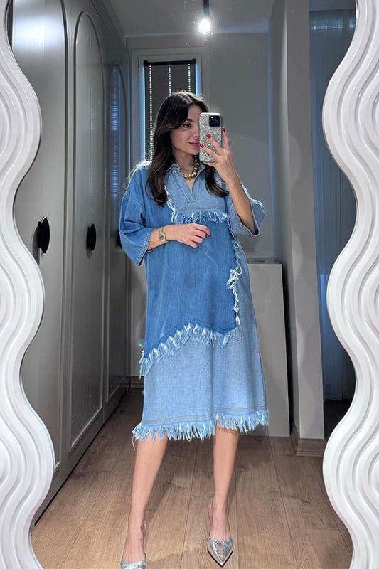 3 AL 2 ÖDEBoris Püsküllü Denim Elbise