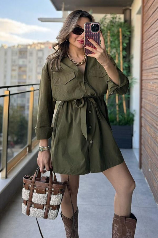 3 AL 2 ÖDEBotana Askeri Yeşil Gömlek Elbise