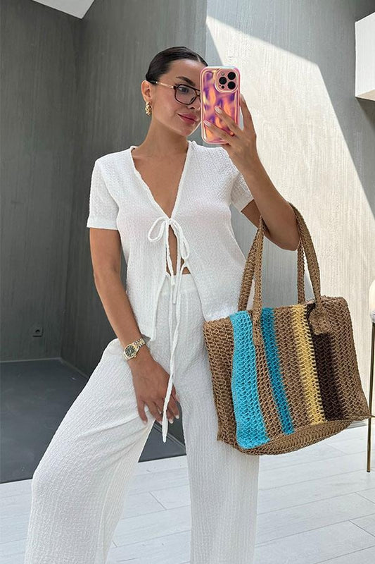3 AL 2 ÖDEBracha Bağlamalı Bürümcük Takım-Beyaz