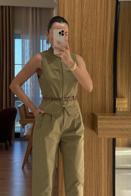 3 AL 2 ÖDEBravelle Haki Kemerli Yelek Pantolon Takım
