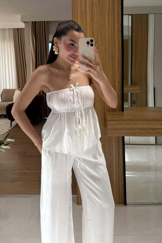 3 AL 2 ÖDEBrea Beyaz Straplez Takım