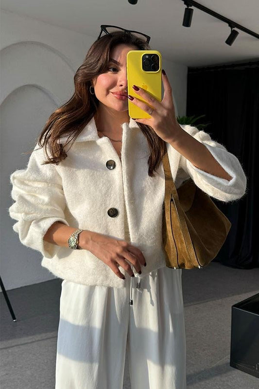 3 AL 2 ÖDECarmela Beyaz Kırçıllı Kısa Kaban