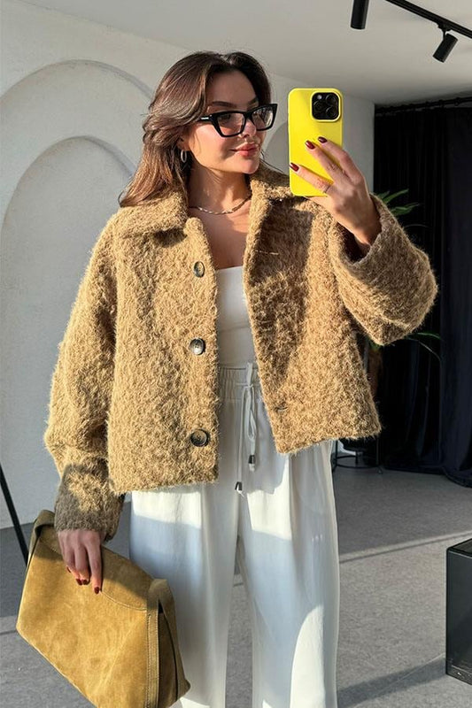 3 AL 2 ÖDECarmela Kahve Kırçıllı Kısa Kaban