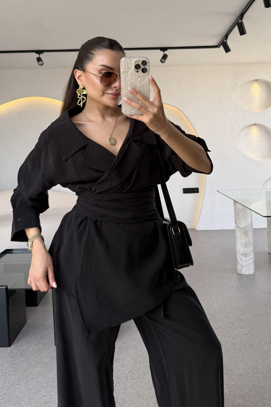 3 AL 2 ÖDECarolina Siyah Tensel Bağlamalı Takım