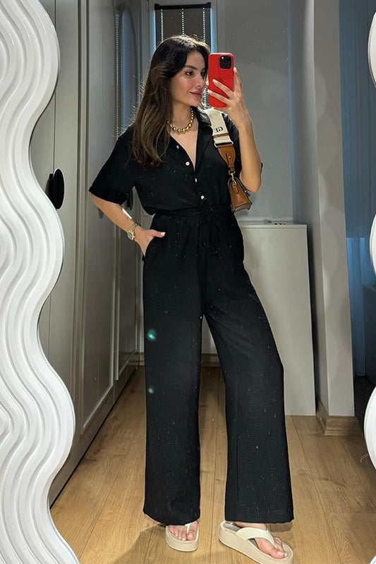 3 AL 2 ÖDECasal Kısa Kol Gömlek Pantolon Takım - Siyah
