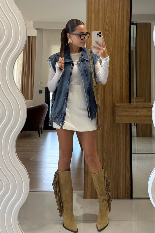 3 AL 2 ÖDECelia Çift Renk Denim Yelekli Takım