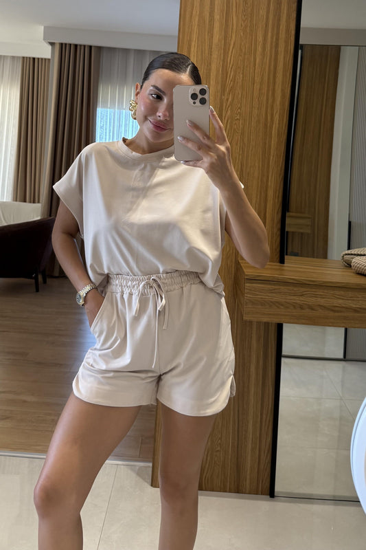 3 AL 2 ÖDECedric Krem Tshirt Şort Modal Takım
