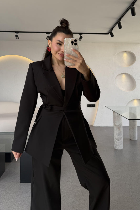 3 AL 2 ÖDECelina Deri Karışımlı Ceket Etek Takım