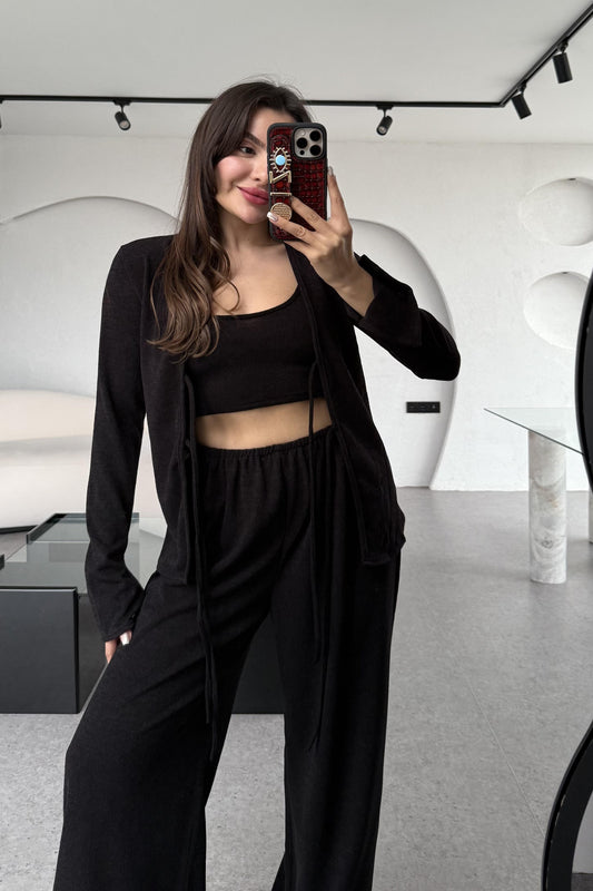 3 AL 2 ÖDEAlegre Siyah Bağlamalı Üçlü Takım