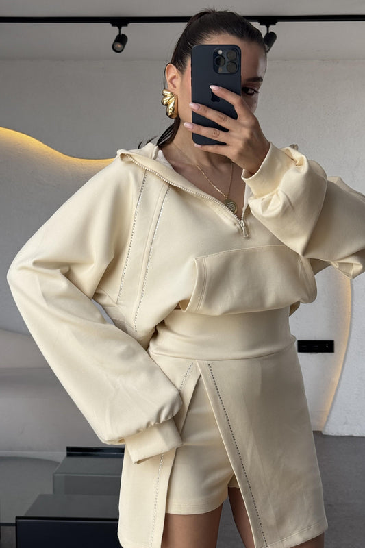 3 AL 2 ÖDECruz Krem Taşlı Şortlu İkili Takım