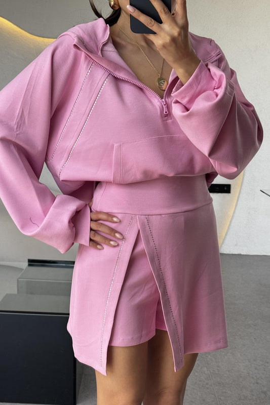 3 AL 2 ÖDECruz Pembe Taşlı Şortlu İkili Takım