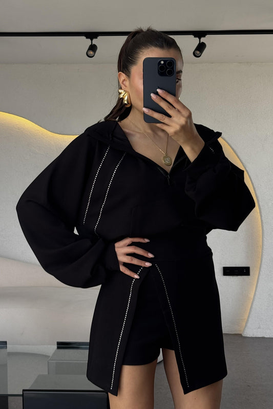 3 AL 2 ÖDECruz Siyah Taşlı Şortlu İkili Takım