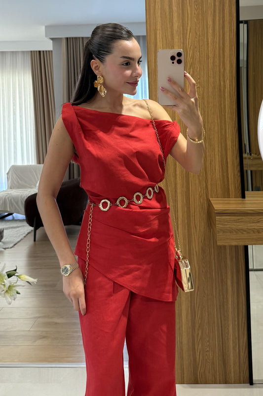 3 AL 2 ÖDECyrus Kırmızı Premium Keten Takım