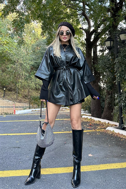 3 AL 2 ÖDEDevin Bel Kuşaklı Siyah Trençkot