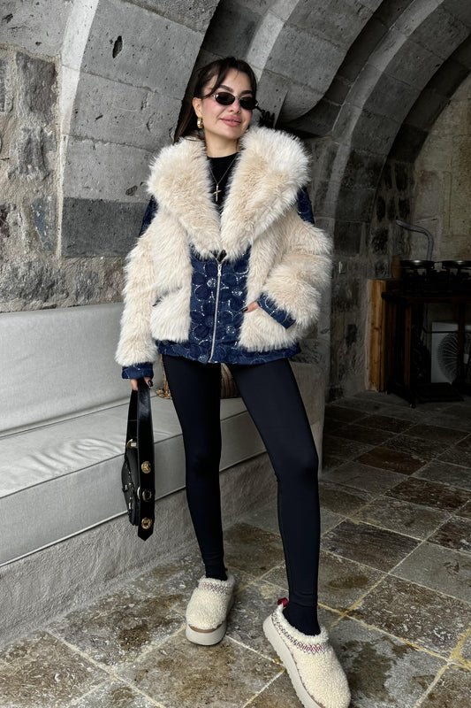 3 AL 2 ÖDEDesce Kot Karışımlı Premium Kürk Kaban