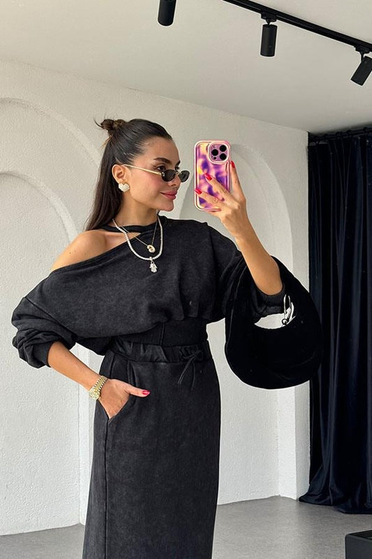 3 AL 2 ÖDEDestiny Omuz Dekolteli Antrasit Etekli Takım