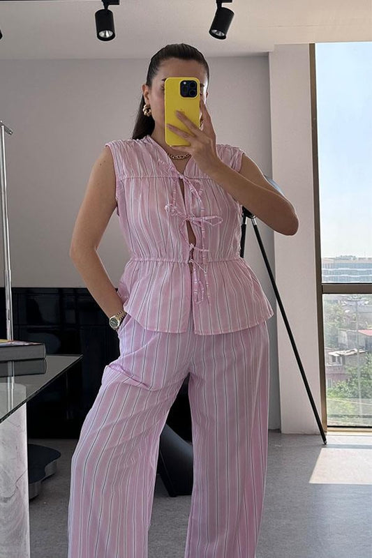 3 AL 2 ÖDEDomenica Pembe Çizgili Bağlamalı Takım