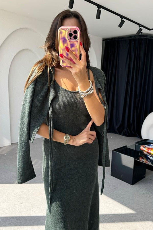 3 AL 2 ÖDEEstelle Hırka Elbise Haki Takım