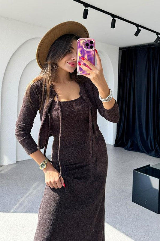 3 AL 2 ÖDEEstelle Hırka Elbise Kahve Takım