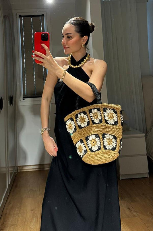 Esther Boyundan Bağlamalı Sırt Dekolteli elbise-Sİyah