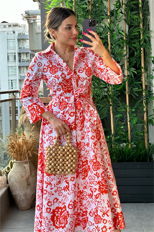 3 AL 2 ÖDEFiesta turuncu beyaz çiçekli elbise