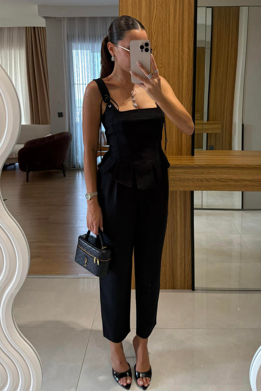 3 AL 2 ÖDEFiora Siyah Crop Pantolon Takım