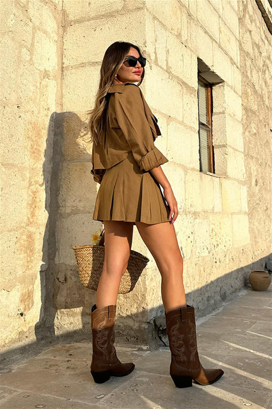 3 AL 2 ÖDEFlore keten şort etekli takım - Taba