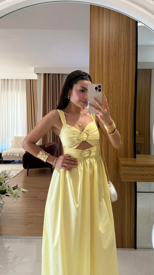 3 AL 2 ÖDEFleur Aksesuarlı Sarı Elbise