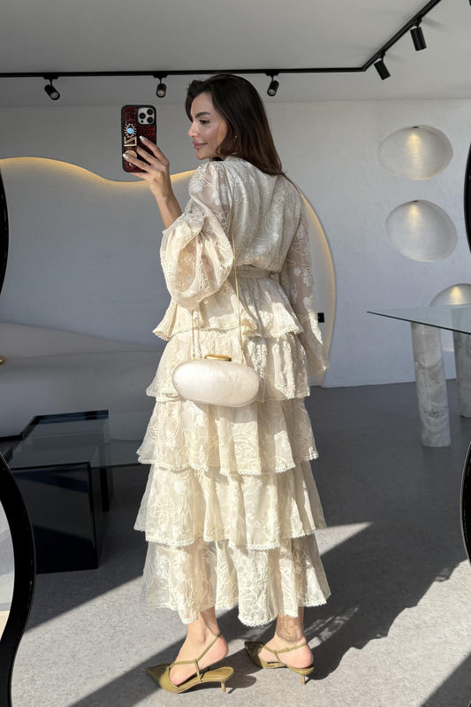 3 AL 2 ÖDEFloresta Bej Tasarım Kat Kat Elbise