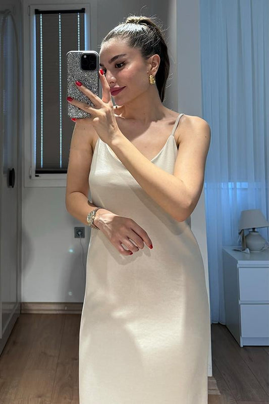 3 AL 2 ÖDEFranke Modal Kumaş Elbise - Krem