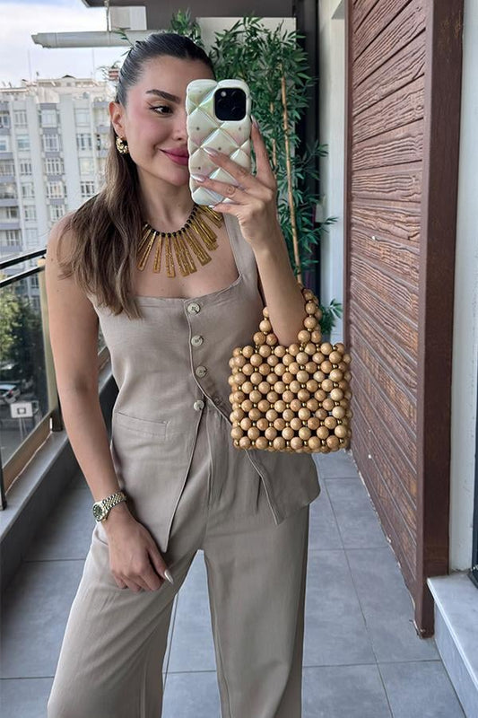3 AL 2 ÖDEFranco Keten Kare Yaka Takım - Vizon