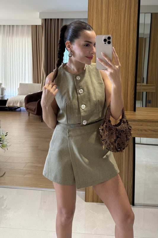 3 AL 2 ÖDEFranko Haki Yelekli Etek Takım