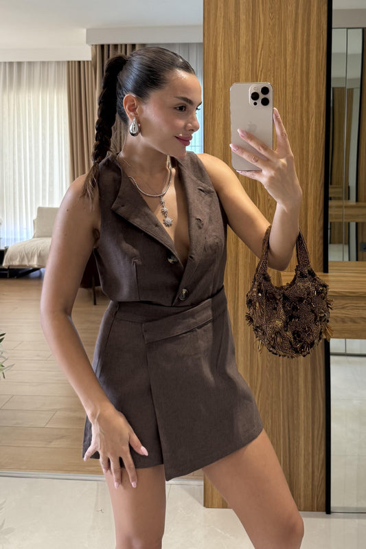 3 AL 2 ÖDEFranko Kahve Yelekli Etek Takım
