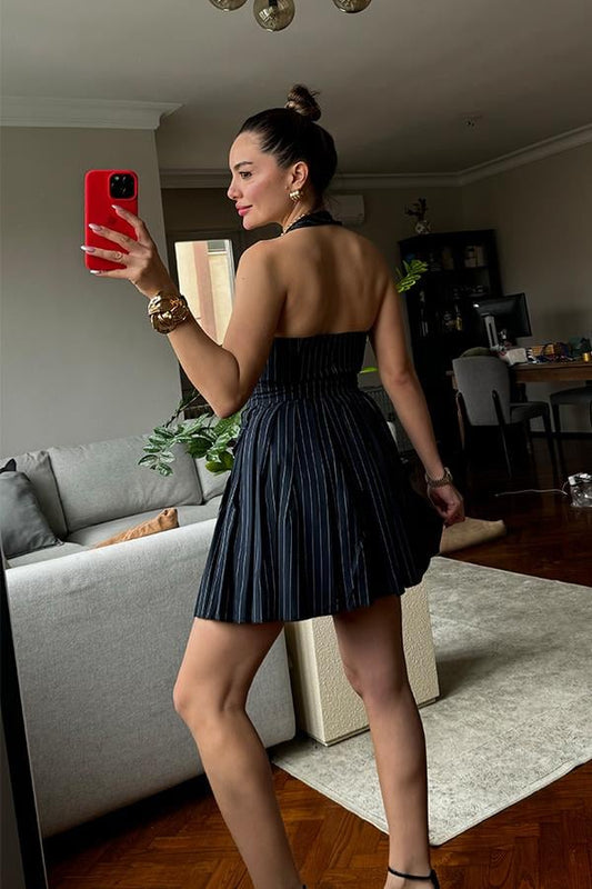 Fuenza Düğme Detaylı Çizgili Takım - Lacivert