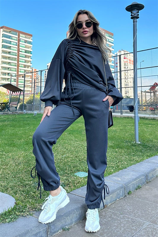 3 AL 2 ÖDEFüme büzgü detaylı tasarım eşofman takımı