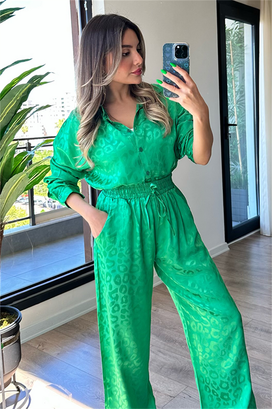 3 AL 2 ÖDEGalia saten dokulu jakarlı takım - Yeşil