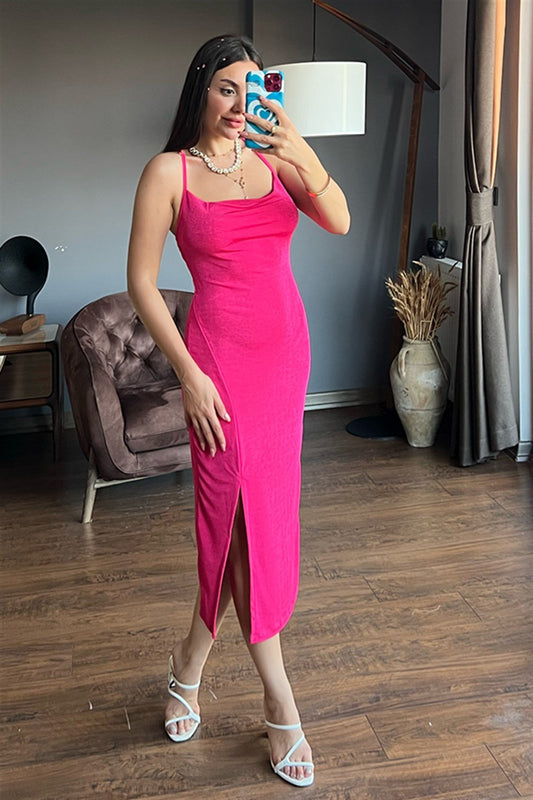 3 AL 2 ÖDEFuşya parlak dokulu elbise